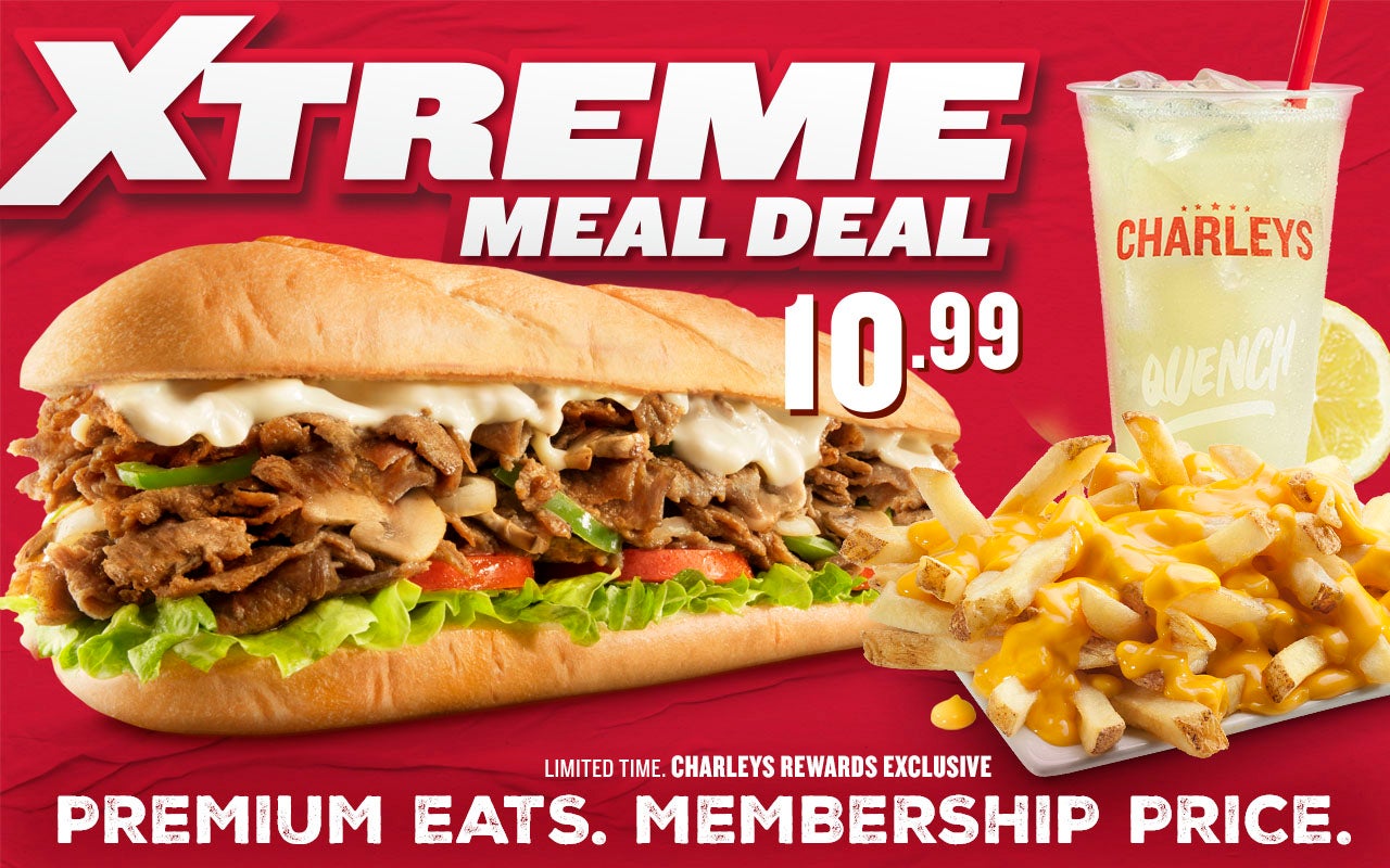 Looking for big flavor without breaking the bank? We’ve got you covered with the Xtreme Meal Deal – your go-to way to enjoy the full Charleys experience at an unbeatable price!
